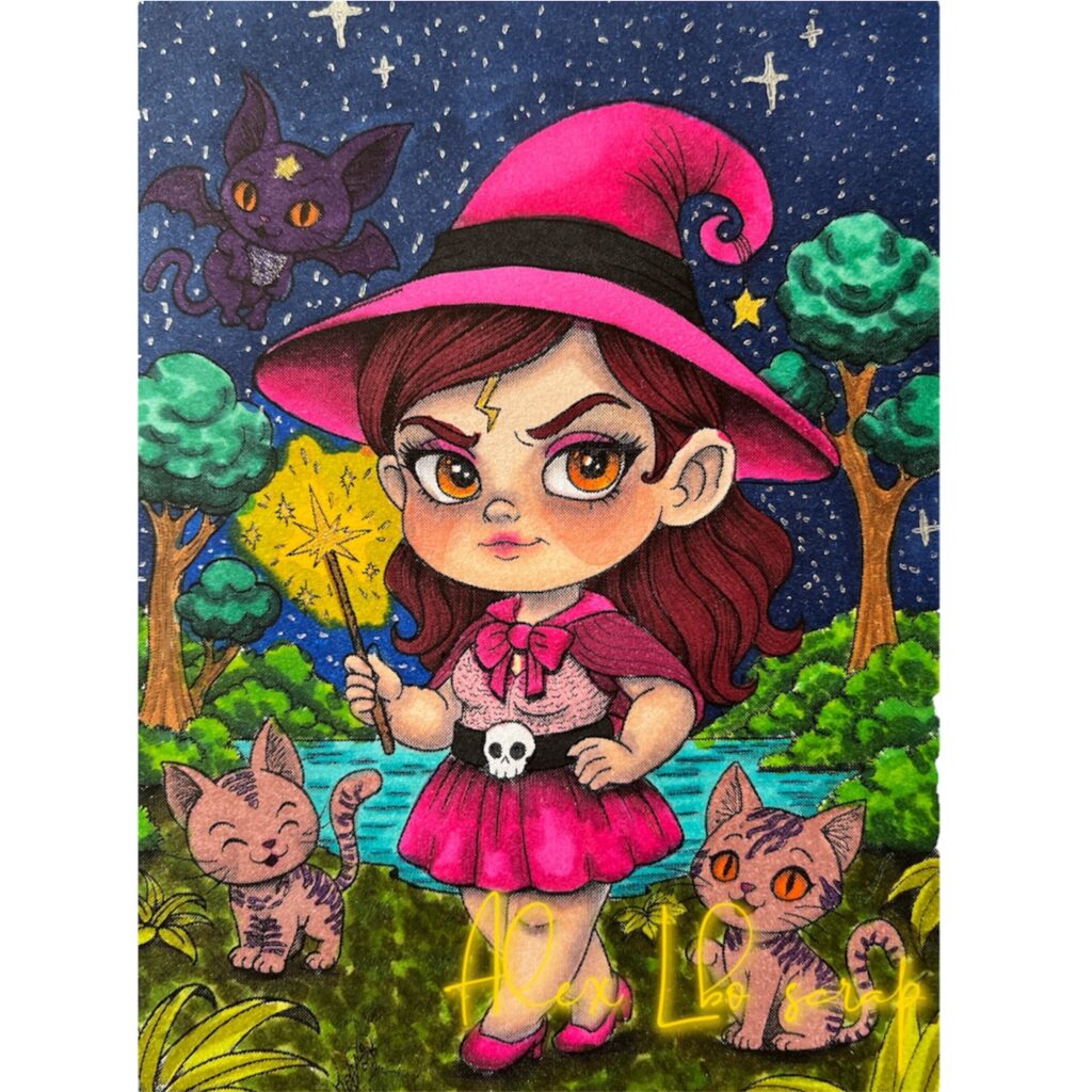 Voici un coloriage de Teo Art intitulé Harria Pottière que j’ai mis en couleur avec des feutres à alcool et stylos gel.
