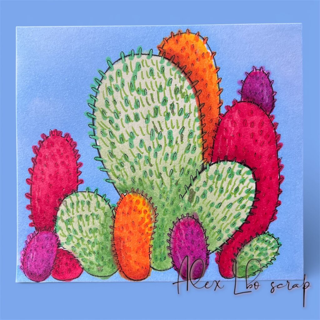 Voici un coloriage de Sakuems intitulé Cactus que j’ai mis en couleur avec des feutres à alcool et stylos gel.