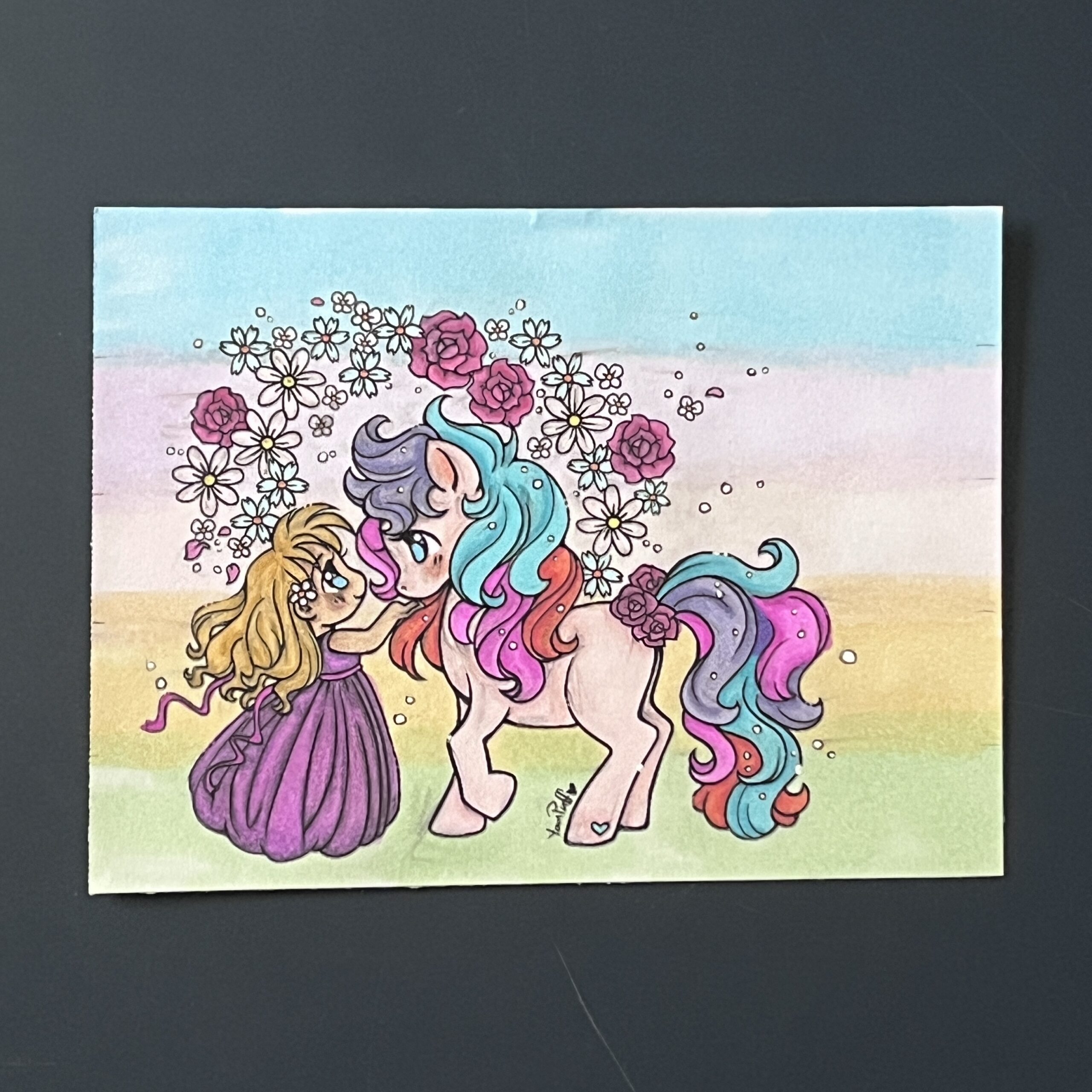 🎨 Un design original : dessin de YamPuff, une jeune fille et un licorne de couleur arc-en-ciel, feutres à alcool.