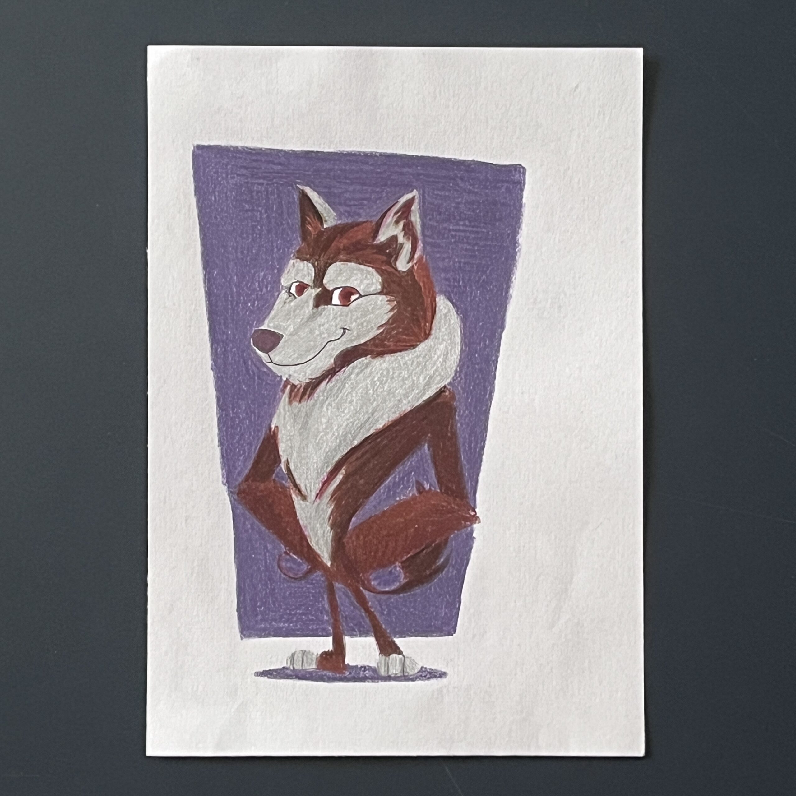 🎨 Un design original : dessin de Dutch designs, un loup debout, crayons de couleur.
