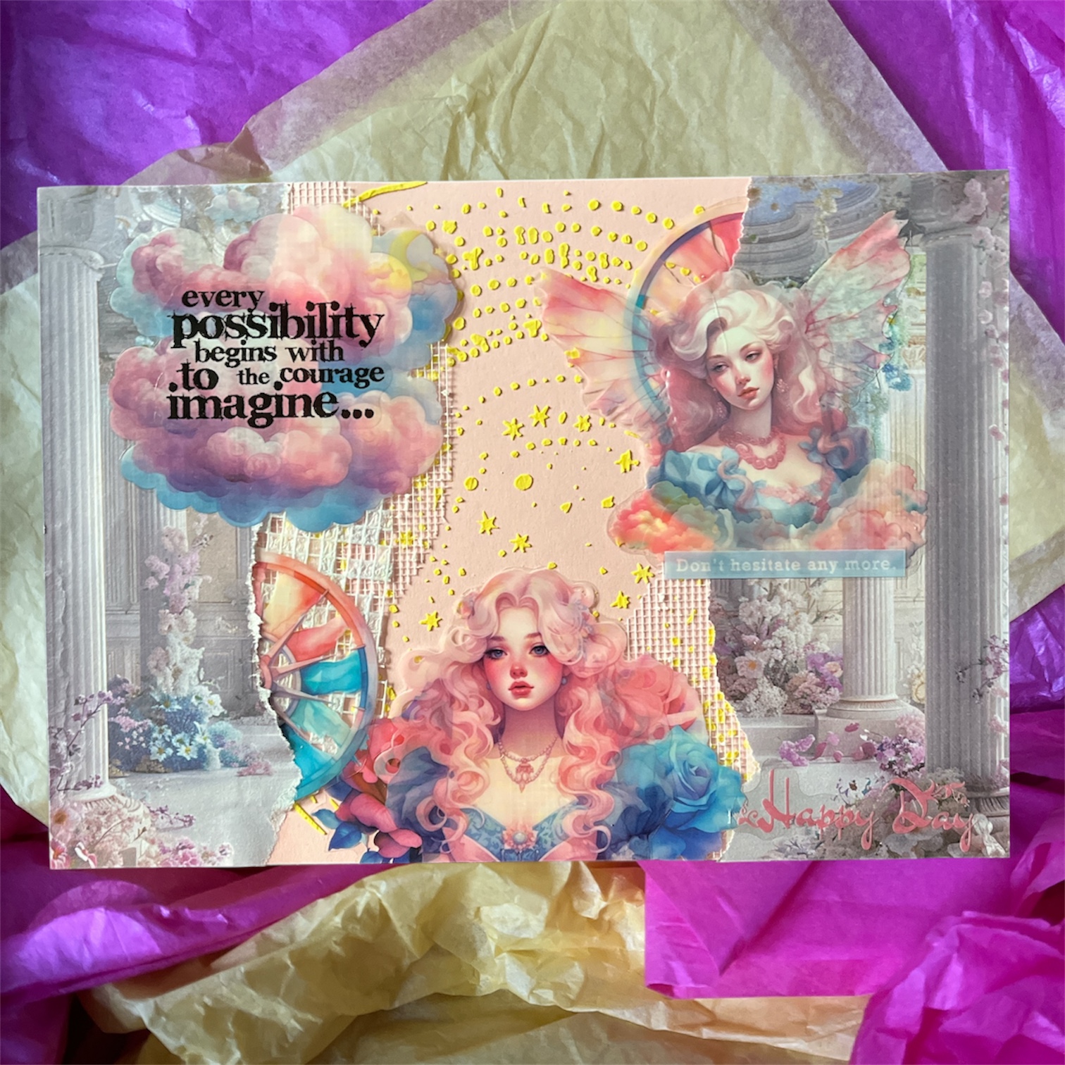 🎨 Un design original : collage sur le thème des contes de fées.